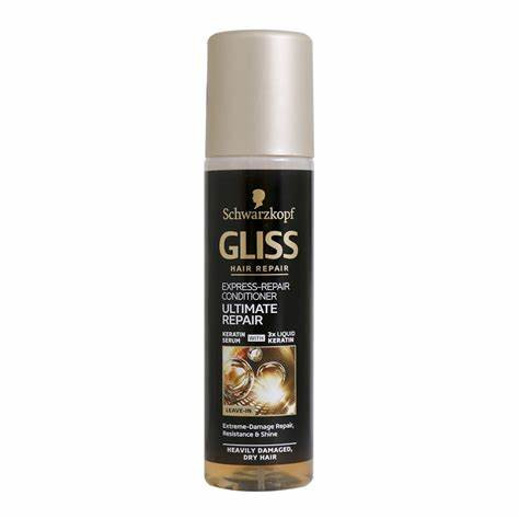 اسپری دوفاز موی «گلیس» (Gliss) مدل ( Ultimate Repair) حجمی حدود ۲۰۰ میلیلیتر دارد. گلیس فاقد عصاره و یا اسانس خاصی است اما درحین استفاده بویی خوش و مطبوع روی موها ایجاد میکند. سرم دوفاز گلیس حاوی کراتین مایع است که باعث درخشندگی و براق شدن موها میشود که زیبایی ظاهر موها را هم بهدنبال دارد. نرمکنندهی موجود در سرم گلیس موها را نرم و لطیف و همچنین خوشحالت میکند و زبری موهای آسیبدیده را کاهش میدهد. سرم دوفاز مدل ( Ultimate Repair) خاصیت ترمیمکنندگی دارد و قادر است موهای آسیبدیده را تاحدی قابلقبول بهبود دهد و ترمیم کند. این اسپری تا ده لایه از هر تار مو نفوذ میکند و تاثیر میگذارد. از ویژگیهای این سرم تاثیر محسوس و سریع آن بر روی مو است. سرمهای مو علاوهبر خاصیت ترمیمکنندگی که دارند باعث میشوند مو حالتی خوب پیدا کند و برای سشوار کشیدن و حالت دادن به مو آماده شود. تفاوت بین سرمهای دوفاز و تک فاز در این است که اسپریهای دوفاز برای موهای بسیار خشک مورد استفاده قرار میگیرند زیرا فاز دوم این اسپریها بیشتر حاوی چربی است که برای موهای خشک حالت ترمیمی هم داشته باشد.