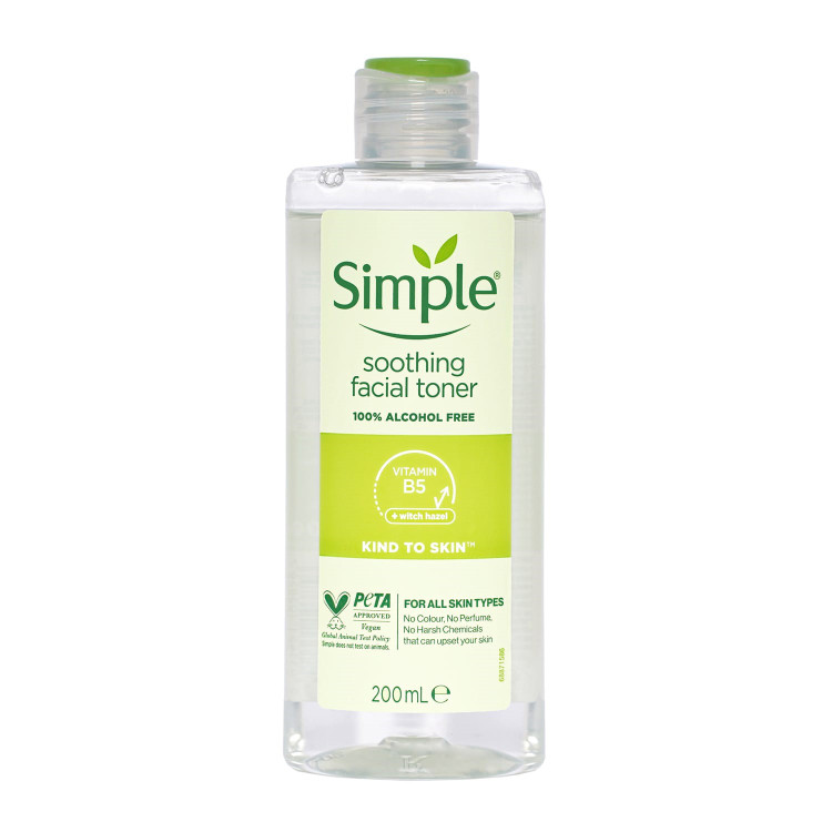 تونر سیمپل حاوی ترکیباتی مثل پرو ویتامین B5، بابونه، فندق افسونگر و آلانتوئین است که دارای خاصیت ضد التهابی و التیام بخشی هستند. این تونر فاقد الکل، عطر، رنگ و مواد شیمیایی خشن با پوست است و هیچ گونه آسیبی به پوست شما وارد نمی کند؛ همچنین غیر کومدون زا است و باعث بروز جوش نمی شود.